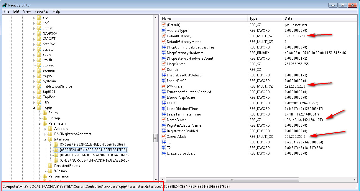 HKEY_LOCAL_MACHINE\SYSTEM\CurrentControlSet\Services\Tcpip\Parameters\Interfaces
